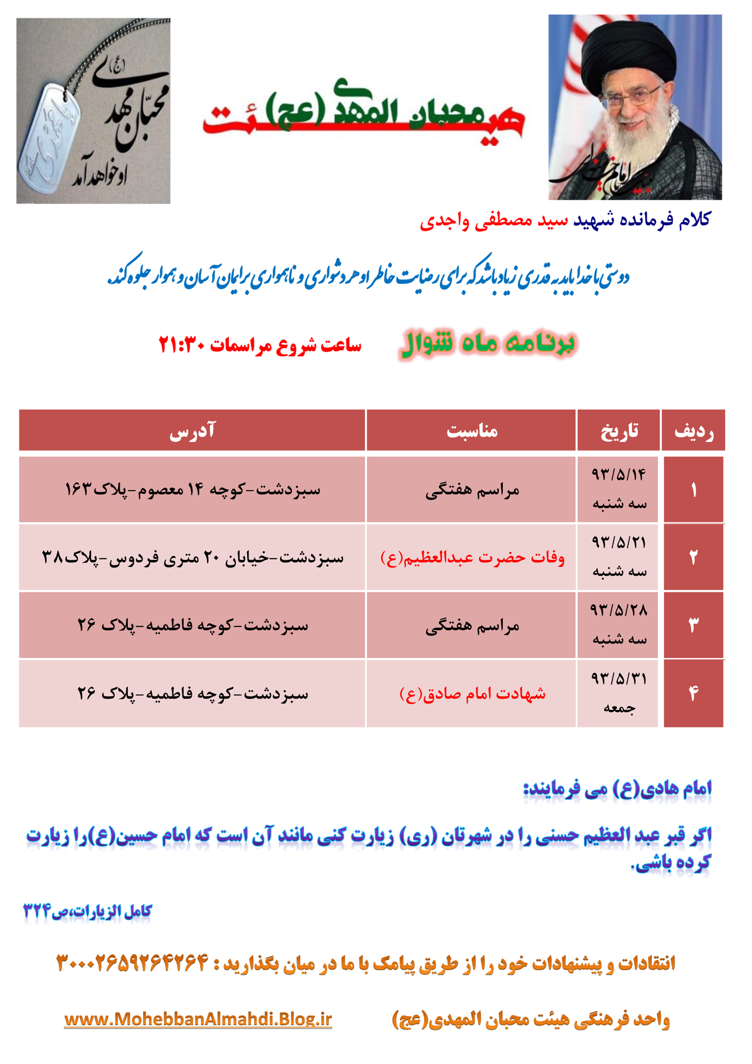 برنامه ماه شوال هیئت محبان المهدی (عج)